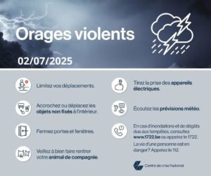 La Province de Namur est placée en alerte orange pour orages ce mercredi 2 juillet, entre 16h et 00h.