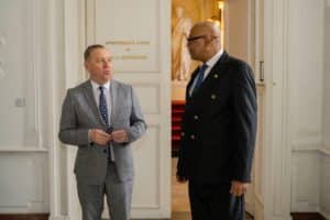: Avec l’ambassadeur des Comores, les échanges ont porté sur les liens historiques que l’archipel a entretenus par le passé avec la Belgique et sa volonté de les prolonger. Une suggestion est venue sur la table, celle de recevoir en visite le gouverneur de la Grande Comore afin de lui présenter quelques initiatives namuroises, notamment dans les domaines de la santé, de l’environnement et du traitement des déchets. Cette idée sera examinée de concerve avec notre Ministère des Affaires étrangères.